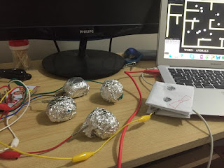 The puppet represents as the player in the game. In able for the player to move, the user must 'eat' the play doh balls corresponding on which direction they want to go.